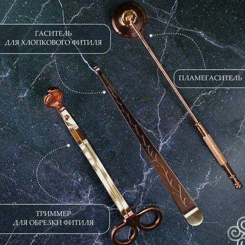 Набор аксессуаров для свечей: триммер (ножницы) для обрезки фитиля, колпачок для гашения пламени, крючок для тушения хлопкового фитиля / набор 3 в 1