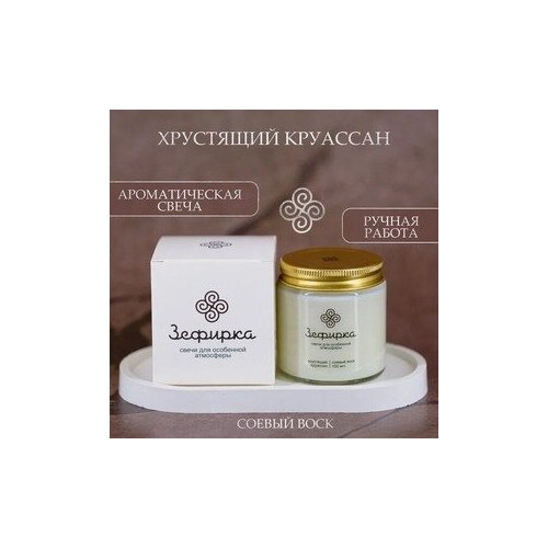 Свеча ароматическая "Хрустящий круассан" ароматическая с двойным деревянным фитилём из натурального соевого воска (100мл) 6.6 см*5 см, 1 шт