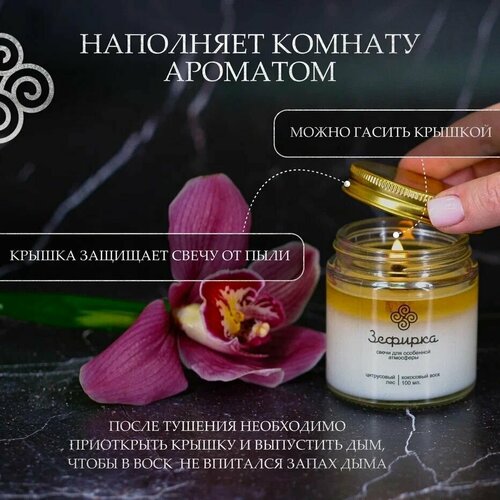 Свеча с ароматом "Пряная Сицилия" ароматическая с двойным деревянным фитилём из натурального соевого воска (100мл) 6.6 см*5 см, 1 шт