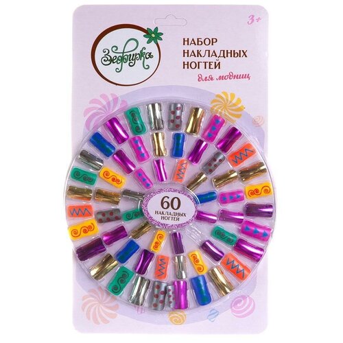 Косметика для девочек Зефирка Набор накладных ногтей Для модниц, в наборе 60 штук PT-01382