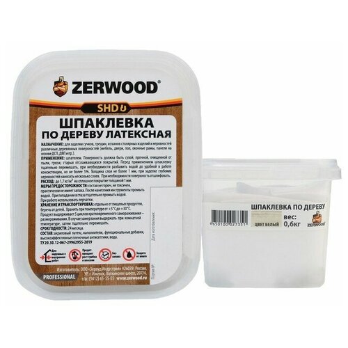 Шпаклевка ZERWOOD SHD по дереву латексная белая 0,6кг