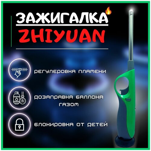 Газовая зажигалка ZHIYUAN (Зеленая) / Автозаправка баллончиком / Для кухонных плит , камина , костров , походов / Уют