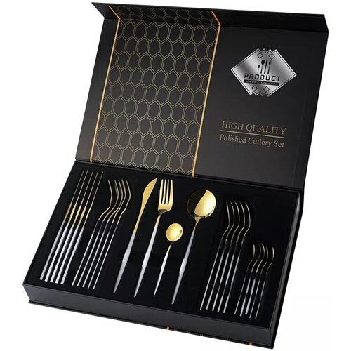 Подарочный набор столовых приборов в коробке Modern-10 Gold White (24 предмета на 6 персон)