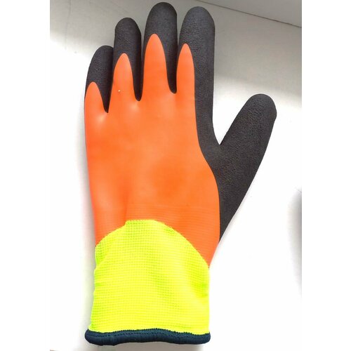 Перчатки строительные утепленные, полный облив, 2 пары, цвет оранжевый, черный, желтый