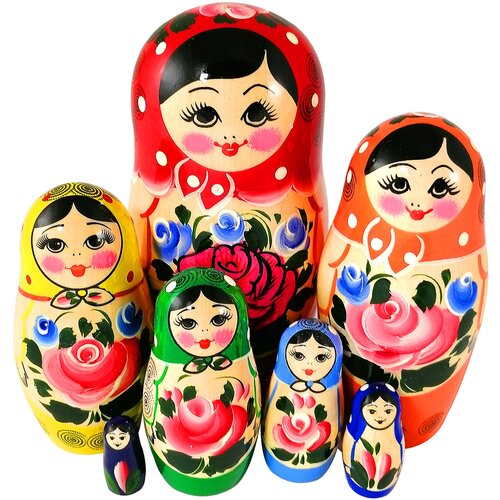 Матрешка Семеновская 7 в 1 "Радуга". Хохломская роспись.