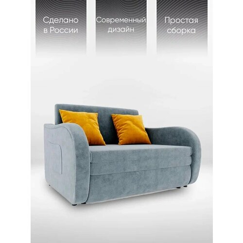 Диван кровать Олимп-1 раскладной с ножками-кубышками подушками и ящиком, Селфи 15/Селфи 08 (велюр)