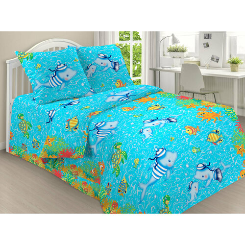 Постельное белье в кроватку поплин Рыбки (Детская кроватка / 112*147 / 100*150 / 40*60)