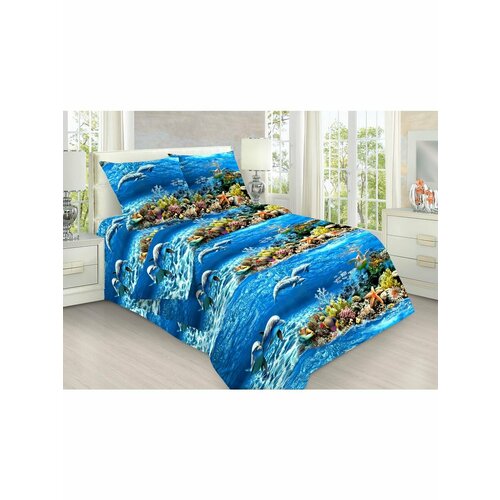 Постельное белье бязь ЗD полутораспальное Подводный мир
