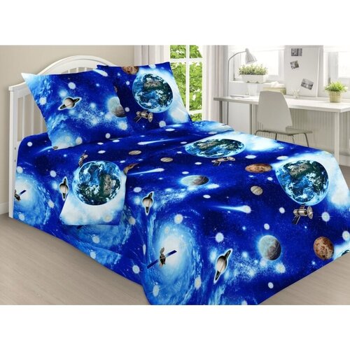 КПБ 1,5-спальный. Бязь. 125 г/м. Галактика синий