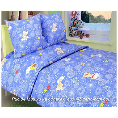 Постельное белье в кроватку Бязь Мишки в облаках голубой (Детская кроватка / 112*147 / 100*150 / 40*60)
