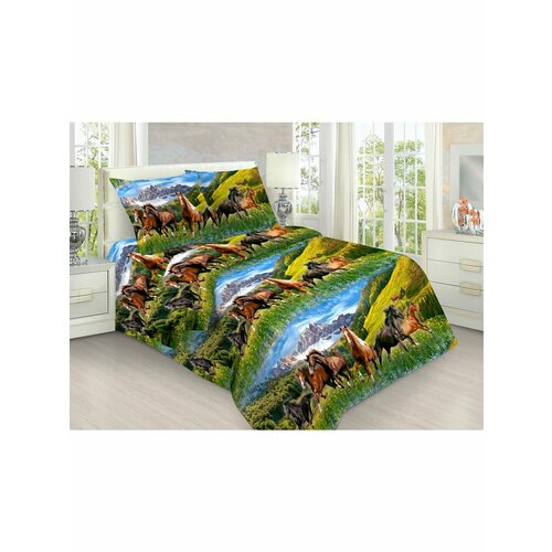 Постельное белье бязь ЗD полутораспальное Лошадки
