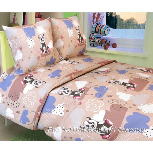 Постельное белье в кроватку Бязь Панды беж. (Детская кроватка / 112*147 / 100*150 / 40*60)