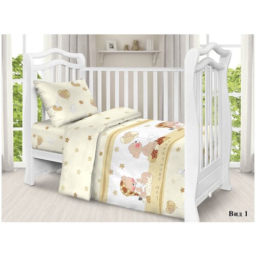Постельное белье в кроватку поплин пл. 115 гр/м2 Мой ангелочек. Мишки беж. (Детская кроватка / 112*147 / 100*150 / 40*60)