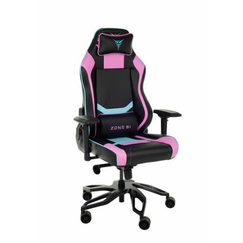 Игровое компьютерное кресло Zone 51 Cyberpunk высота регулируется 126-136 см, подлокотники 4D, угол наклона спинки регулируется фуксия-циан