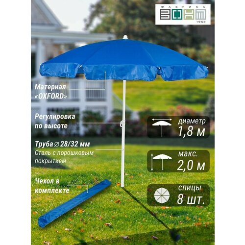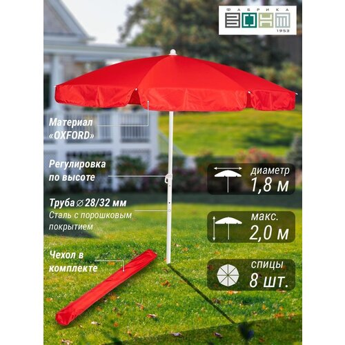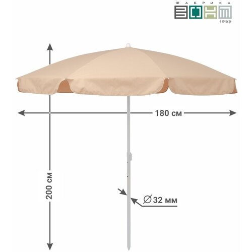 Зонт пляжный "викэнд 32" , d 1,8 м. (диаметр купола), высота 2 м, с регулировкой высоты, оксфорд 200d, высота 2 м. / для сада