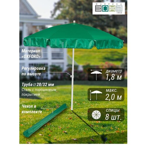 Зонт пляжный "викэнд 32" , d 1,8 м. (диаметр купола), высота 2 м, с регулировкой высоты, оксфорд 200d, зелёный / для сада