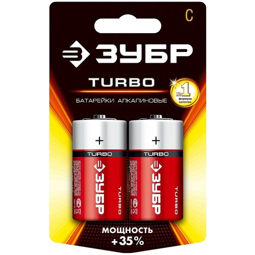 ЗУБР Щелочная батарейка 1.5 В, тип С, 2 шт, ЗУБР Turbo