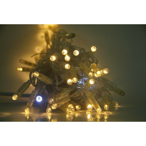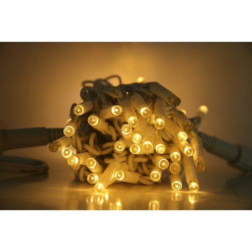 Гирлянда уличная 10м, 70 LED ламп, белый провод, цвет свечения тёплый белый, мерцание, можно соединять (арт. XL-10-zol)