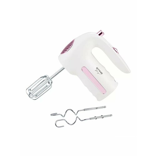 Вт, 5 скоростных режимов, кнопка извлечения насадок, 2 комплекта металлических насадок: для замеса теста, для взбивания яиц/крема. Материал - пластик. Компактный миксер с 5 скоростными режимами и 2 комплектами насадок подходит для смешивания жидкостей, взбивания яиц или крема, приготовления пюре. Крючками можно замесить тесто для любимой выпечки. Миксер удобен и прост в использовании, имеет эргономичный дизайн корпуса, выполненного из высококачественного пластика. 5 скоростных режимов позволят выбрать оптимальную скорость вращения насадок для любого продукта. Кнопка извлечения насадок упрощает уход за миксером после окончания работы.