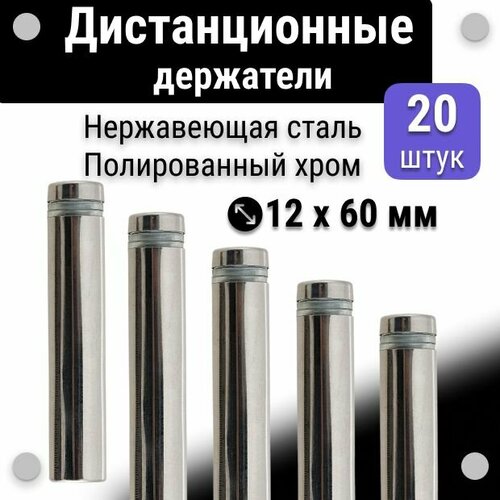 Дистанционные держатели 12х60 мм, для табличек, набор 20 шт, полированный хром