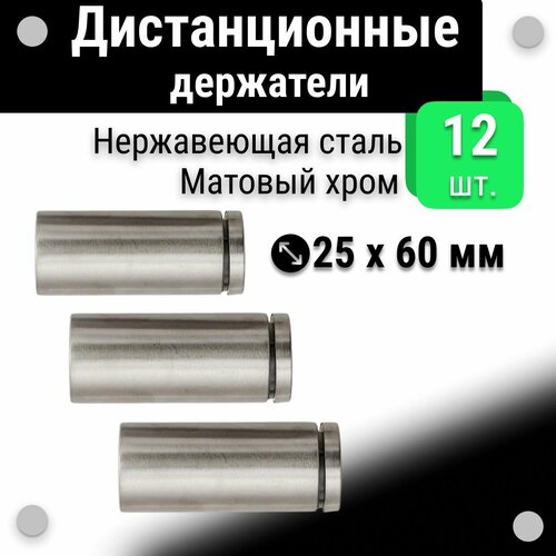 Дистанционные держатели 25х60 мм, для табличек, набор 12 шт, матовый хром