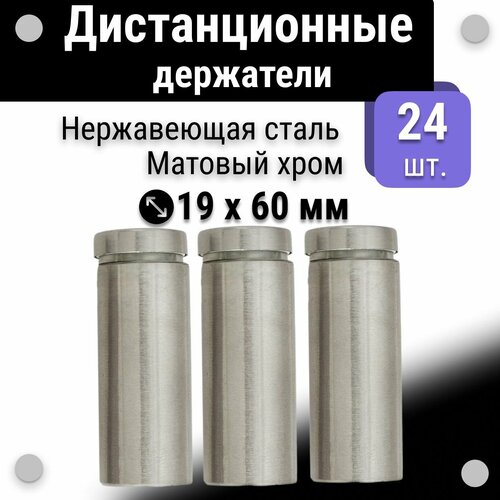 Дистанционные держатели 19х60 мм, для табличек, набор 24 шт, матовый хром