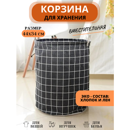 Корзина для хранения игрушек, вещей, белья (черная клетка)