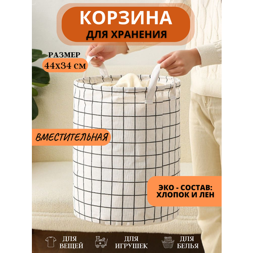 Корзина для хранения игрушек, вещей, белья (белая клетка)