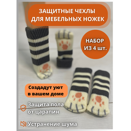 Защитные чехлы носочки на мебель, Накладки на ножки 4 шт (чб)