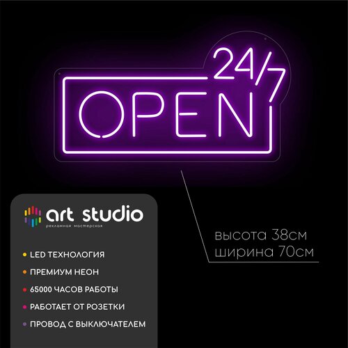 Неоновая вывеска "Open 24/7" 54см х 68см