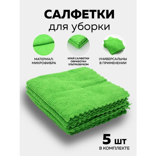 Набор ярко-зеленых салфеток, тряпок для уборки в доме/машине из микрофибры, Премиум качества, 30х30 см, 5 шт