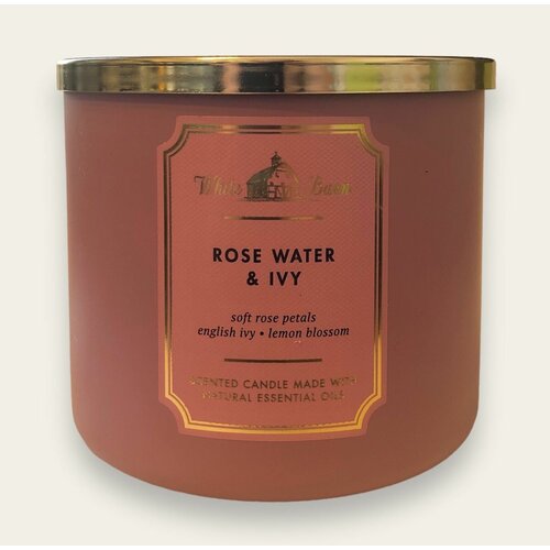 Свеча ароматическая Bath and Body Works Rose Water&Ivy 3 фитиля