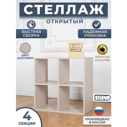 Стеллаж этажерка книжный универсальный деревянный открытый бежевый- 4 секции (Капучино)