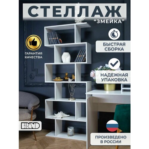 Стеллаж этажерка книжный универсальный деревянный открытый белый - 6 секций