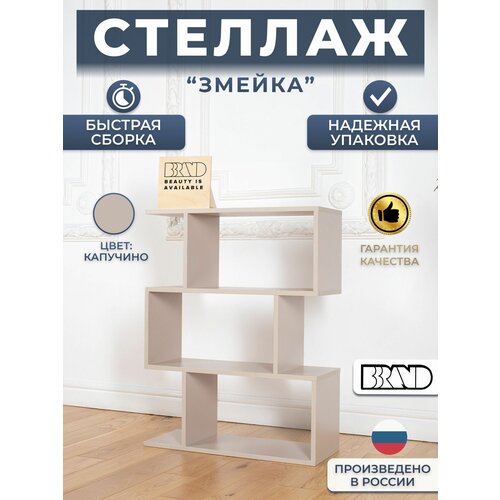 Стеллаж этажерка деревянный открытый бежевый - 3 секций (Капучино)