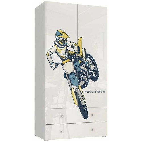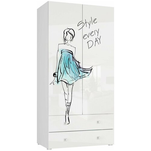 Шкаф распашной Beneli модерн стиль, Двухдверный, с ящиками, Бело-серый/Белый глянец, 100х201,5х56,5 см, 1шт.