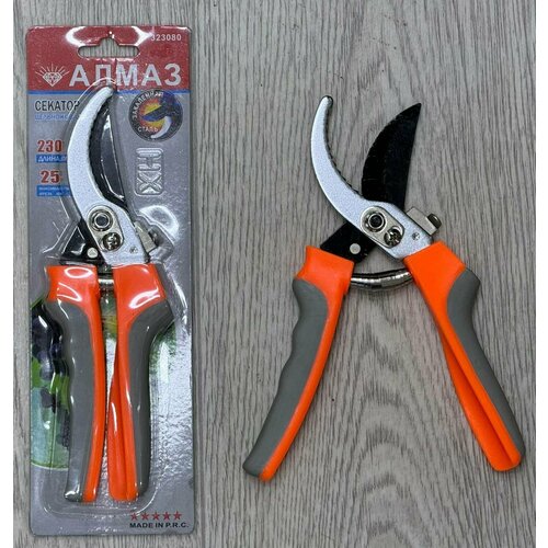 Садовый секатор "Алмаз" с закаленной сталью от бренда "Berd", длина 23 сантиметра