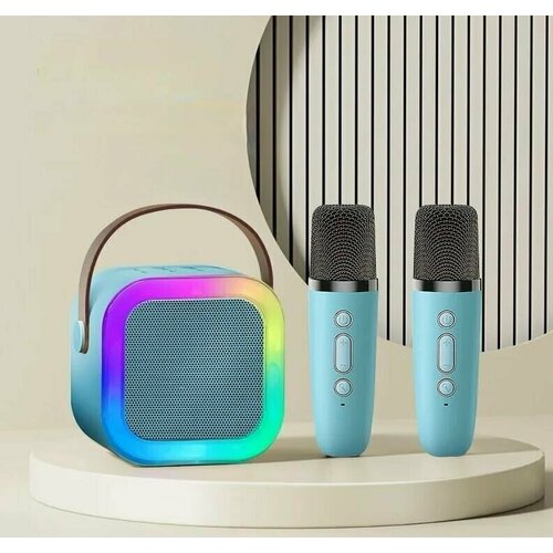 Караоке система с двумя беспроводными микрофонами и колонкой (Синий)