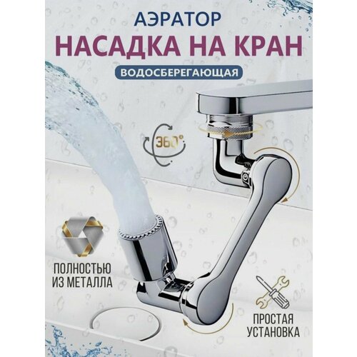 Водосберегающая насадка аэратор для смесителя (металлическая), поворотный, гибкий, 1080 градусов, для кухни и ванной