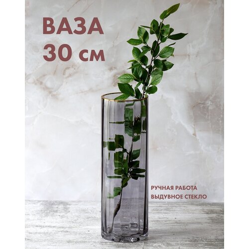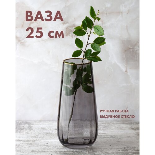 Ваза для цветов и сухоцветов BERGEN Decor из стекла круглая Сага 30 см дымчатый золото