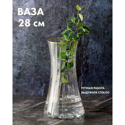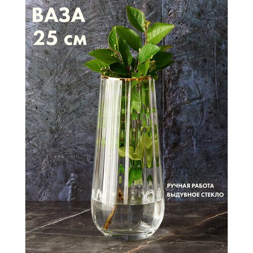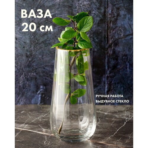 Ваза для цветов и сухоцветов BERGEN Decor из стекла круглая Сага 25 см прозрачный золото