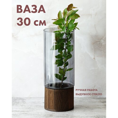 Ваза для цветов и сухоцветов BERGEN Decor из стекла круглая Оскар 31 см с деревянным основанием