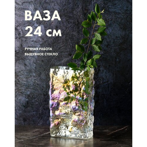 Ваза для цветов и сухоцветов BERGEN Decor из стекла квадратная Фрост Аура 24 см