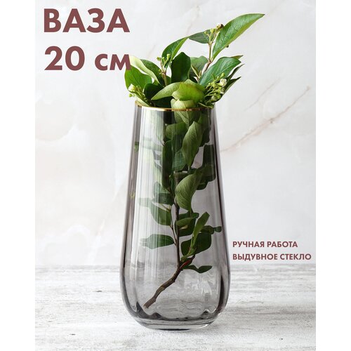 Ваза для цветов и сухоцветов BERGEN Decor из стекла круглая Сага 20 см дымчатый золото