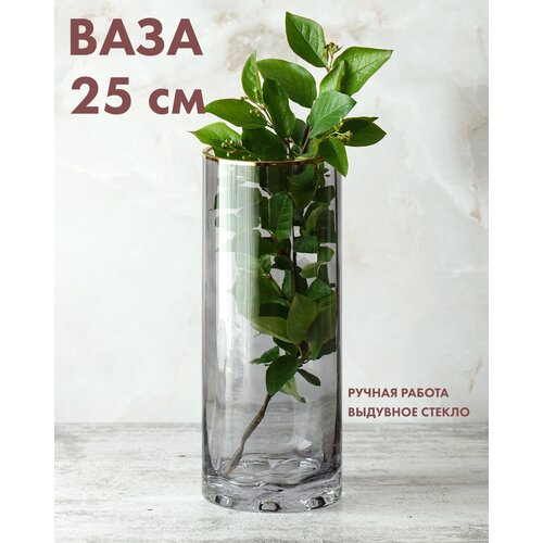 Ваза для цветов и сухоцветов BERGEN Decor из стекла круглая Сага 25 см дымчатый золото