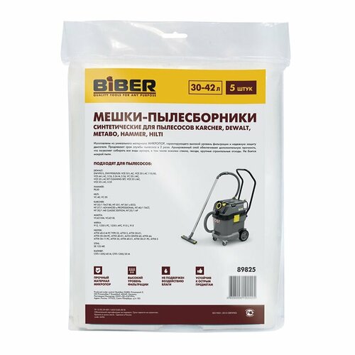 Бибер 89825 Мешки для пылесосов KARCHER, DEWALT, METABO, HAMMER, HILTI уп.5шт