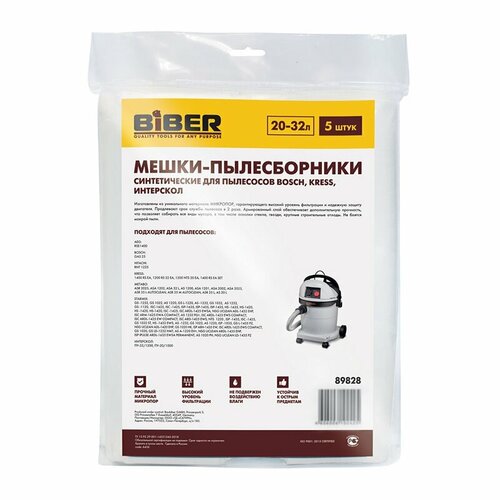 Бибер 89828 Мешки для пылесосов BOSCH, KRESS, ИНТЕРСКОЛ уп.5шт