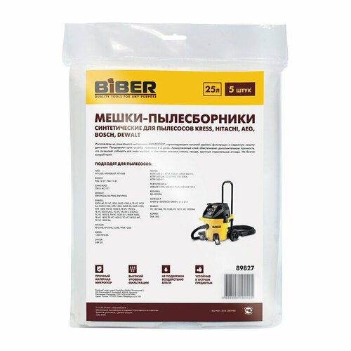 Бибер 89827 Мешки для пылесосов KRESS, HITACHI, AEG, BOSCH, DEWALT уп.5шт