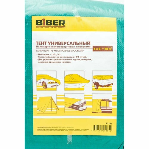 Biber Тент универсальный полимерный влагозащитный c люверсами 6x8м 93285 тов-156788