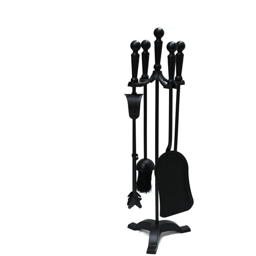 Каминный набор FT89WB на стойке 5 предметов (щетка, кочерга, совок, щипцы, подставка)